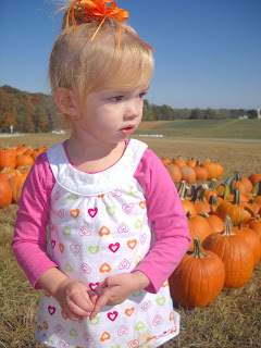 We just went and got ours today. Audrey helped pick them out, and I took pictures! No we don't pick pumpkins from Walmart or any other grocery store. We go to a farm. The same farm I went to every fall to pick my pumpkins growing up! And now my daughter gets to go to the same farm, and get some memories of her own! :) So enjoy some of our great pictures (I know I haven't been posting personal pictures lately, but I've got all the uploading problems fixed). :)